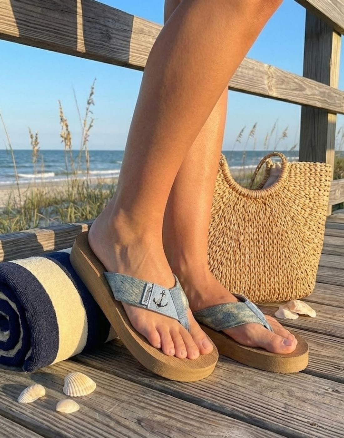 Love the way Tidewater flip flops have just the right amount of arch support for me. The cork color bottoms is perfect for a summer look. Stylish stripe straps with the adorable flip flop goes with all of my patriotic outfits.