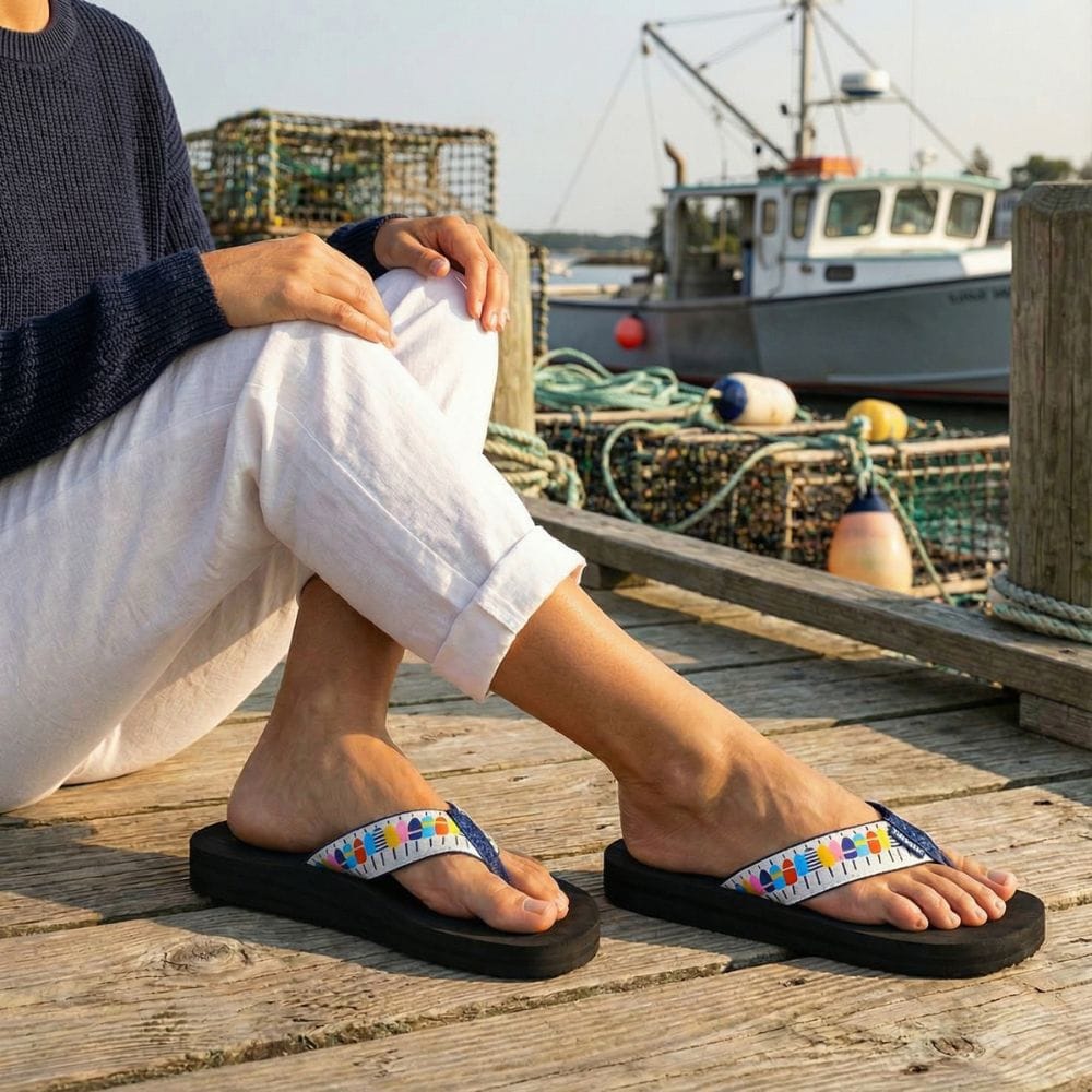 Love the way Tidewater flip flops have just the right amount of arch support for me. The cork color bottoms is perfect for a summer look. Stylish stripe straps with the adorable flip flop goes with all of my patriotic outfits.