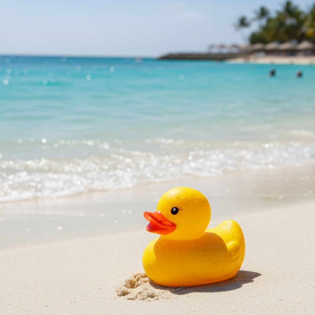 Our Rubber Duck Flip Flops are equal parts adorable and supportive, featuring a playful beach print filled with sun, surf, palm trees, and of course, rubber duck floats. This whimsical design rides on a serious comfort platform with a contoured footbed and arch support that makes every step feel like a walk on sunshine.